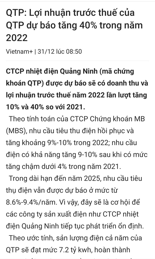 Rủi ro đối với QTP là quy hoạch điện VIII:Tại hội nghị lấy ý kiến hoàn thiện Quy hoạch phát triển điện lực quốc gia thời kỳ 2021-2030, tầm nhìn đến năm 2045 (Quy hoạch Điện VIII) có bao gồm việc giảm điện than; phát triển năng lượng tái tạo và năng lượng mới. Hiện thì quy hoặc điện VIII vẫn chưa ảnh hưởng tới QTP.