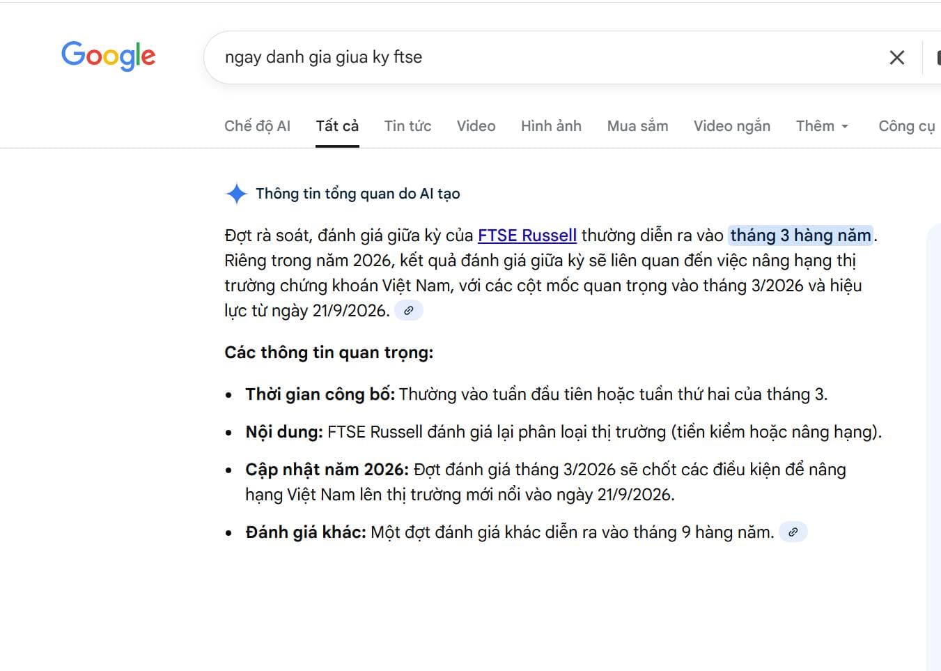 Tuần đầu tiên hoặc tuần thứ 2 của tháng 3 FTSE sẽ công bố VN có được nâng hạng lên mới nổi hay không? Có cụ nào biết chính xác ngày nào không vậy?