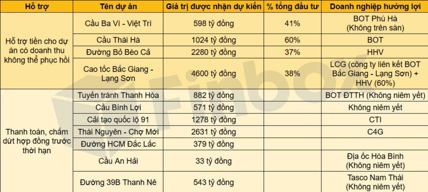 Các doanh nghiệp hưởng lợi bao gồm C4G, HHV, CTI.