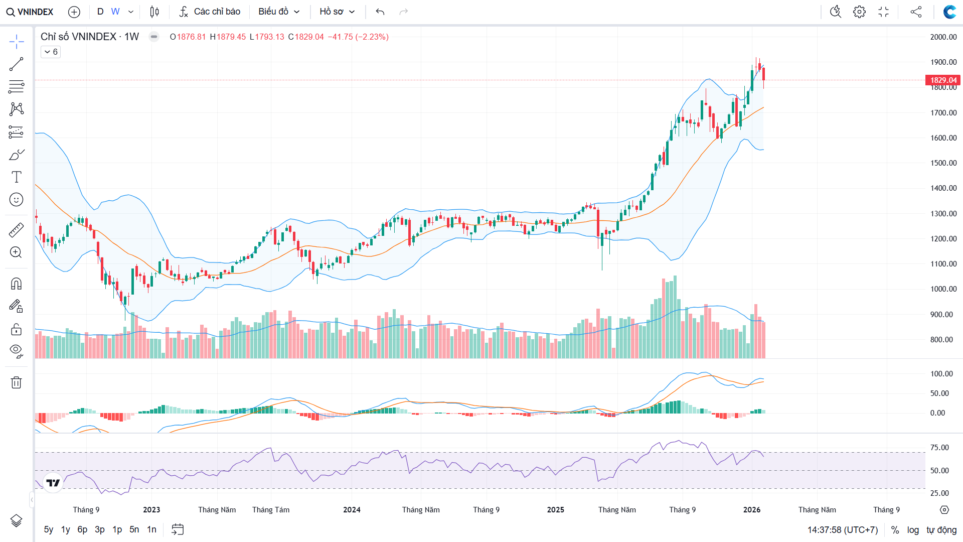 Chốt tuần giao dịch cuối cùng của tháng 1 thị trường tiếp tục xu hướng điều chỉnh ngắn hạn. VNI tạo cây nến đỏ và có rút chân nhẹ cuối tuần sau khi chạm xuống 1800đ và kết tuần tại 1829.04đ, giảm 41.75đ (-2.23%) so với tuần trước đó.