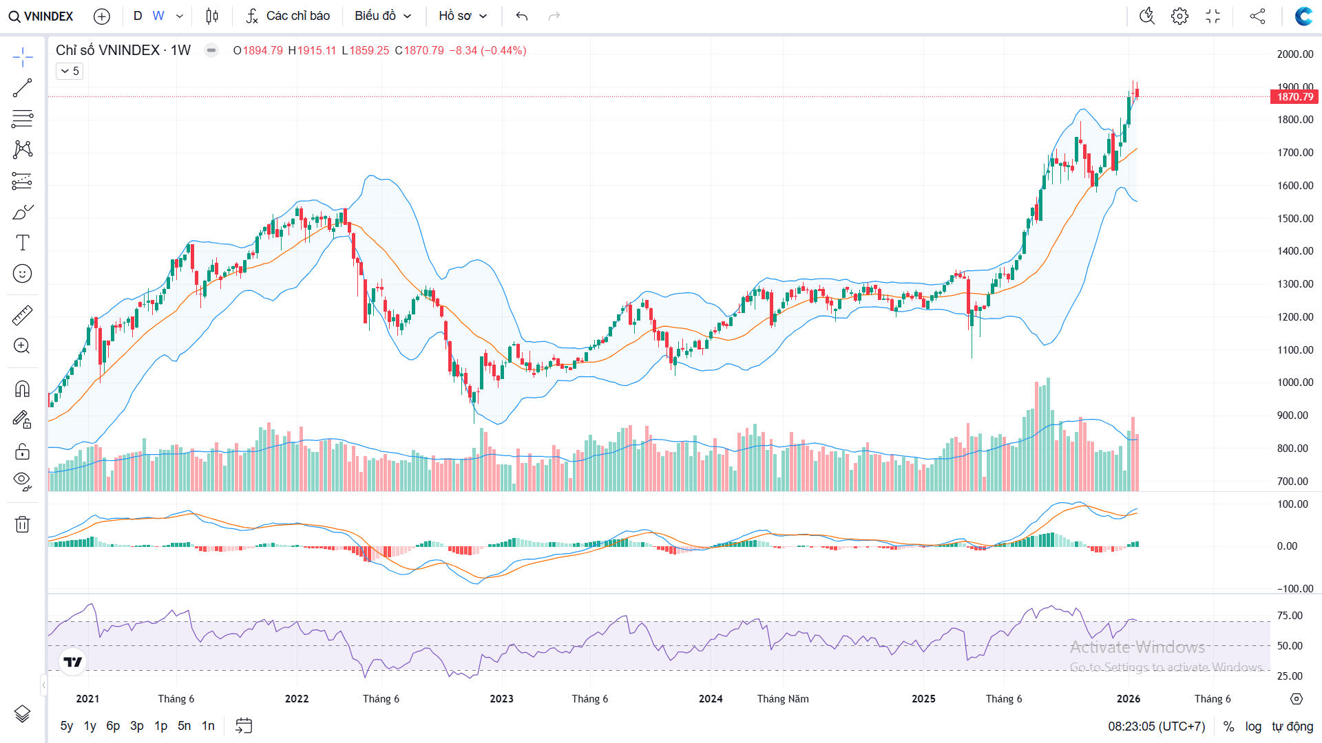 Hầu hết các doanh nghiệp đã công bố KQKD quý 4/2025 và giai đoạn tiếp theo thị trường sẽ tập trung vào tiềm năng tăng trưởng trong năm 2026. Trước mắt VNI có xu hướng hồi phục về MA20 ngày ở 1858đ tuy nhiên chỉ còn 2 tuần giao dịch trước khi nghỉ Tết nên dự báo cũng sẽ không có nhiều biến động cả về mặt điểm số và thanh khoản. Tuần tới ACE vẫn tập trung ở nhóm DNNN được hưởng lợi từ Nghị quyết 79, còn 1 số nhóm ngành khác tuy có dấu hiệu rục rịch nhưng vẫn cần thêm thời gian.