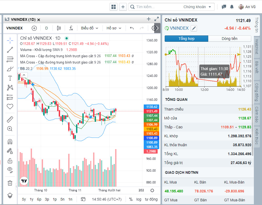 → Khả năng cao mai sẽ là 1 phiên bật mạnh dứt điểm 1130 để cho thấy sự rũ bỏ tốt hôm nay.