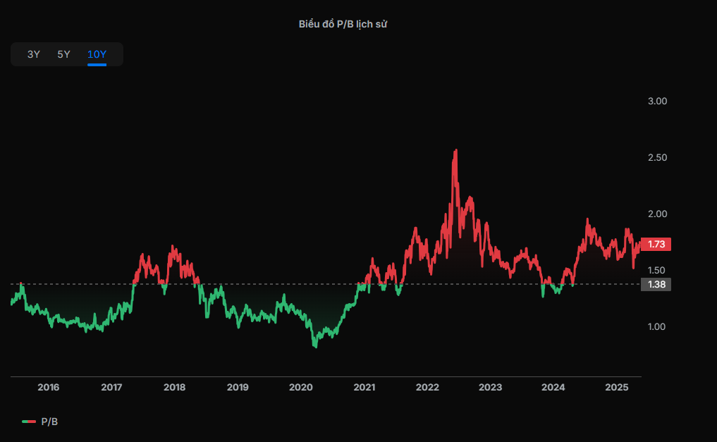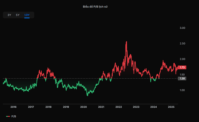 Diễn biến định giá P/B của REE trong 10 năm gần nhất – Nguồn: Simplize – Định giá