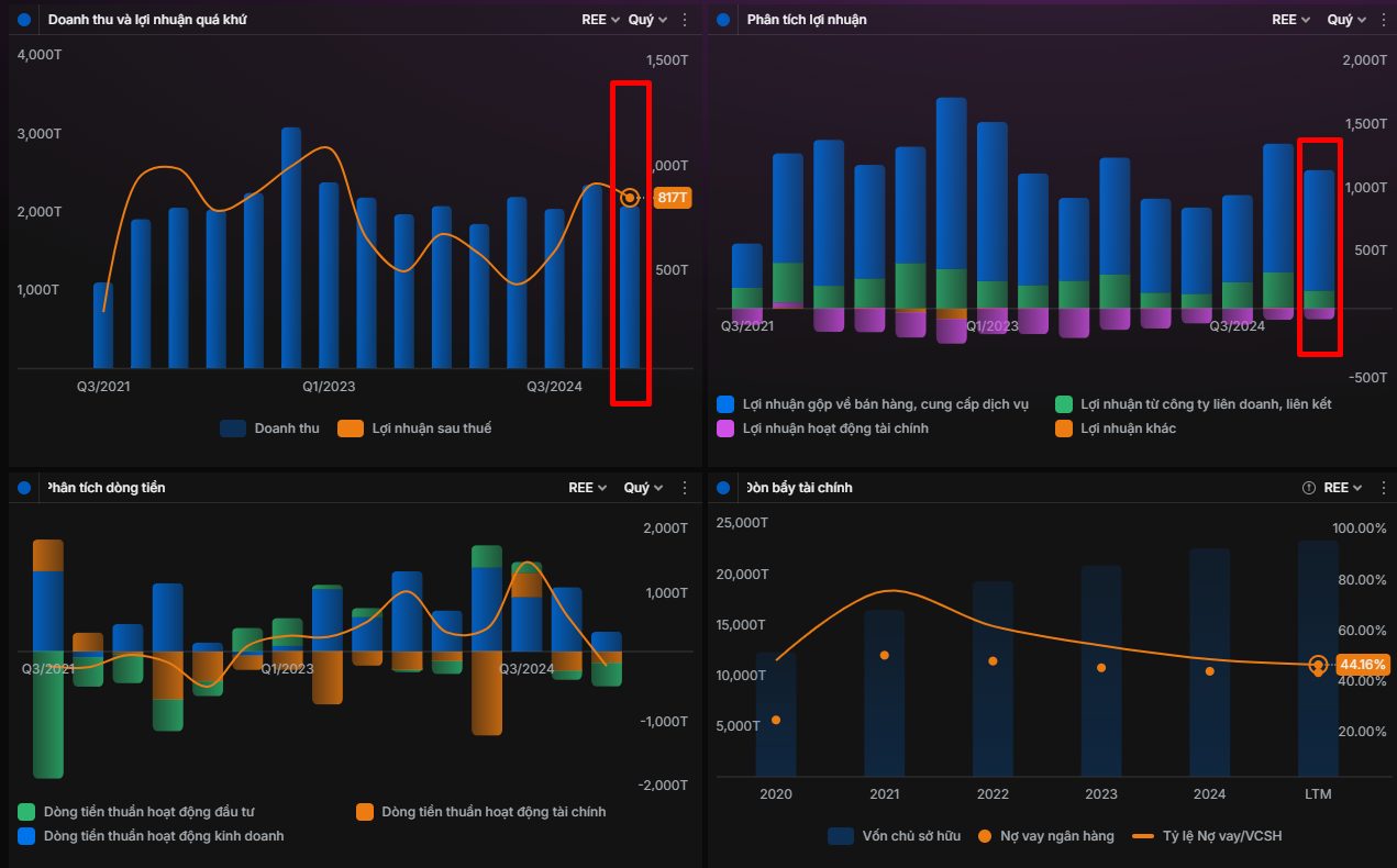Báo cáo tài chính Q1 – 2025 của REE cho thấy kết quả kinh doanh tăng trưởng ấn tượng, cụ thể: