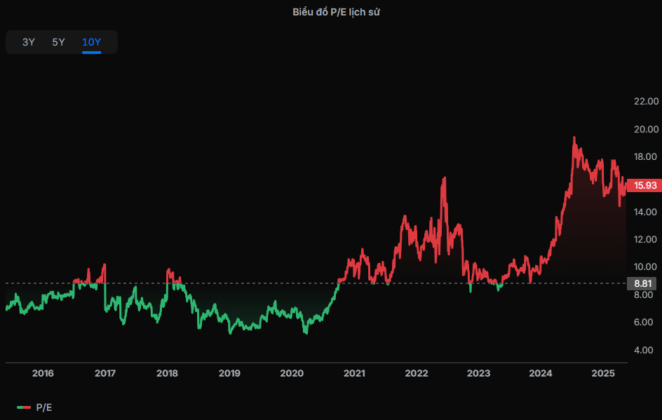 Diễn biến định giá P/E của REE trong 10 năm gần nhất – Nguồn: Simplize – Định giá
