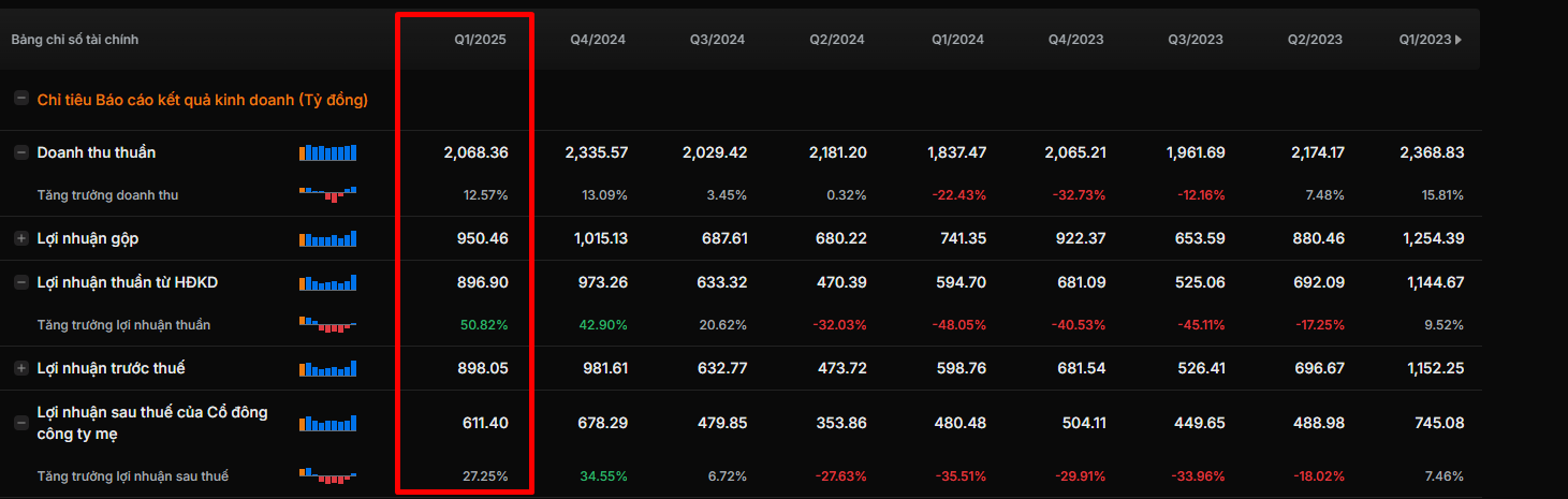 - Doanh thu thuần đạt 2.068 tỷ (+12,5% YoY)