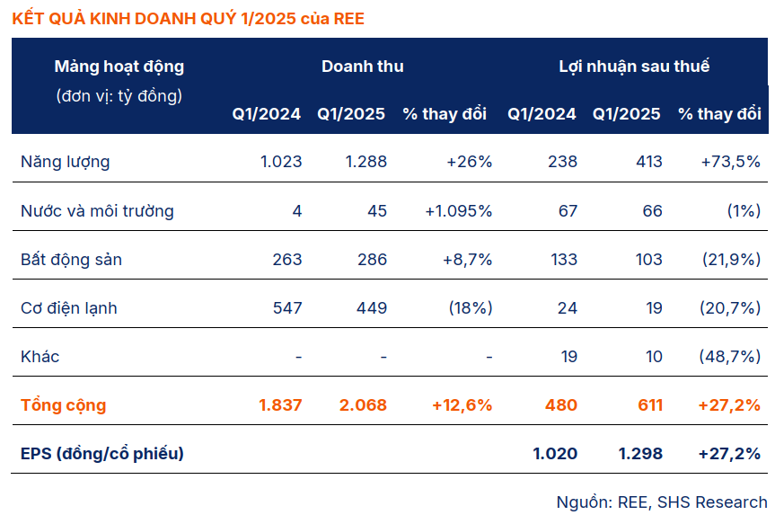 REE được đánh giá sẽ có một năm 2025 bùng nổ, đặc biệt nhờ mảng năng lượng tái tạo và sự hồi phục của bất động sản văn phòng.