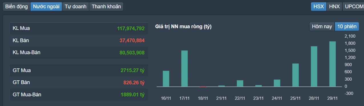 Nay tây mua 2,5k tỷ thì tổng hàng mua ròng của nó lên 15,5 k tỷ, nhỏ lẻ bán ròng xấp xỉ 20 k tỷ, thế thì VNI còn đi xa lắm!