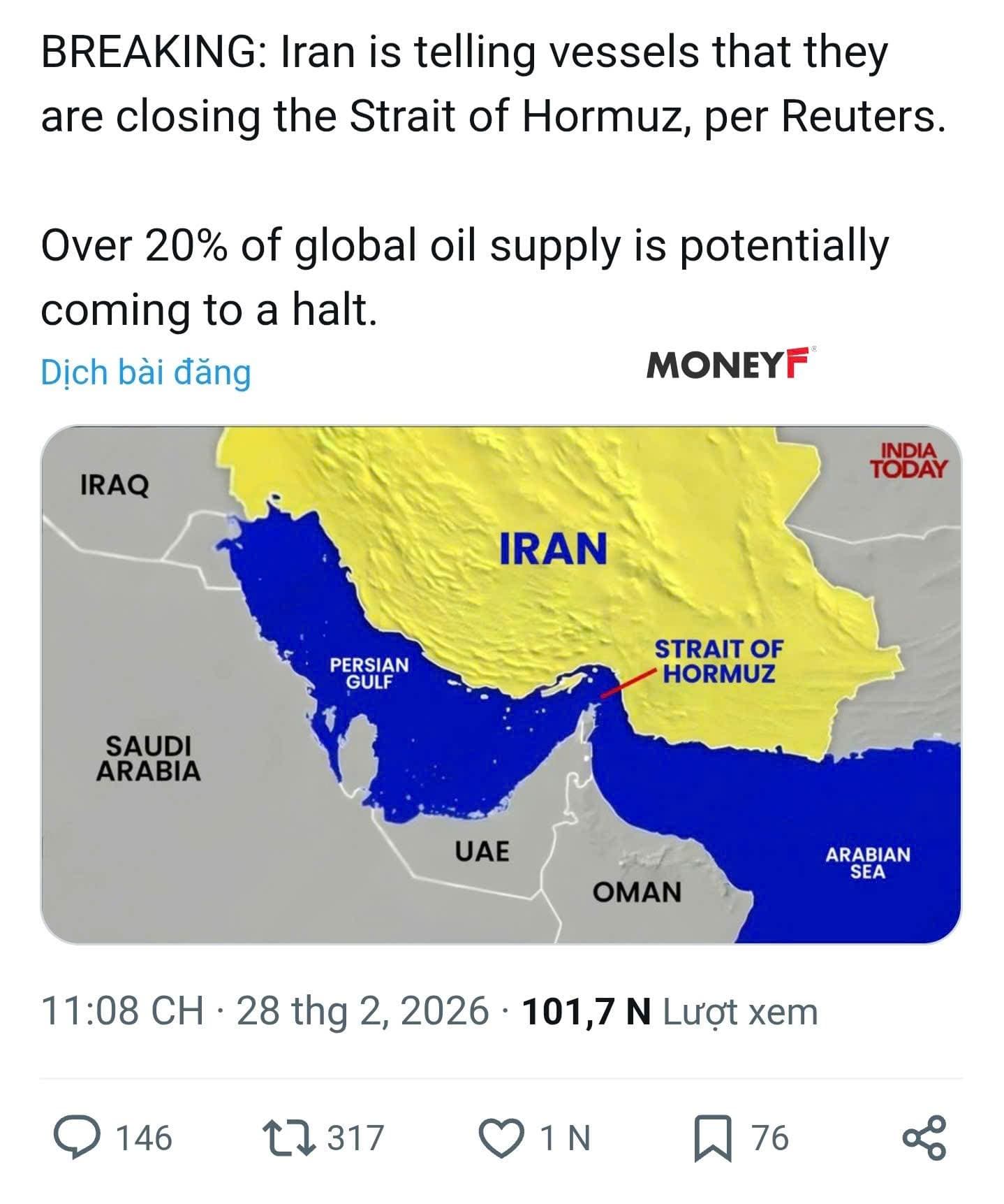 Hơn 20% nguồn cung dầu toàn cầu có nguy cơ bị gián đoạn ![]()