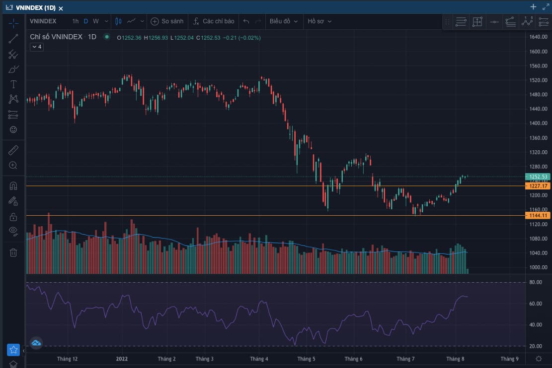 Kịch bản 1: DJ, SP500 tiếp tục phục hồi => VNI sẽ hồi mạnh mẽ hơn, lấp GAP lại 1280