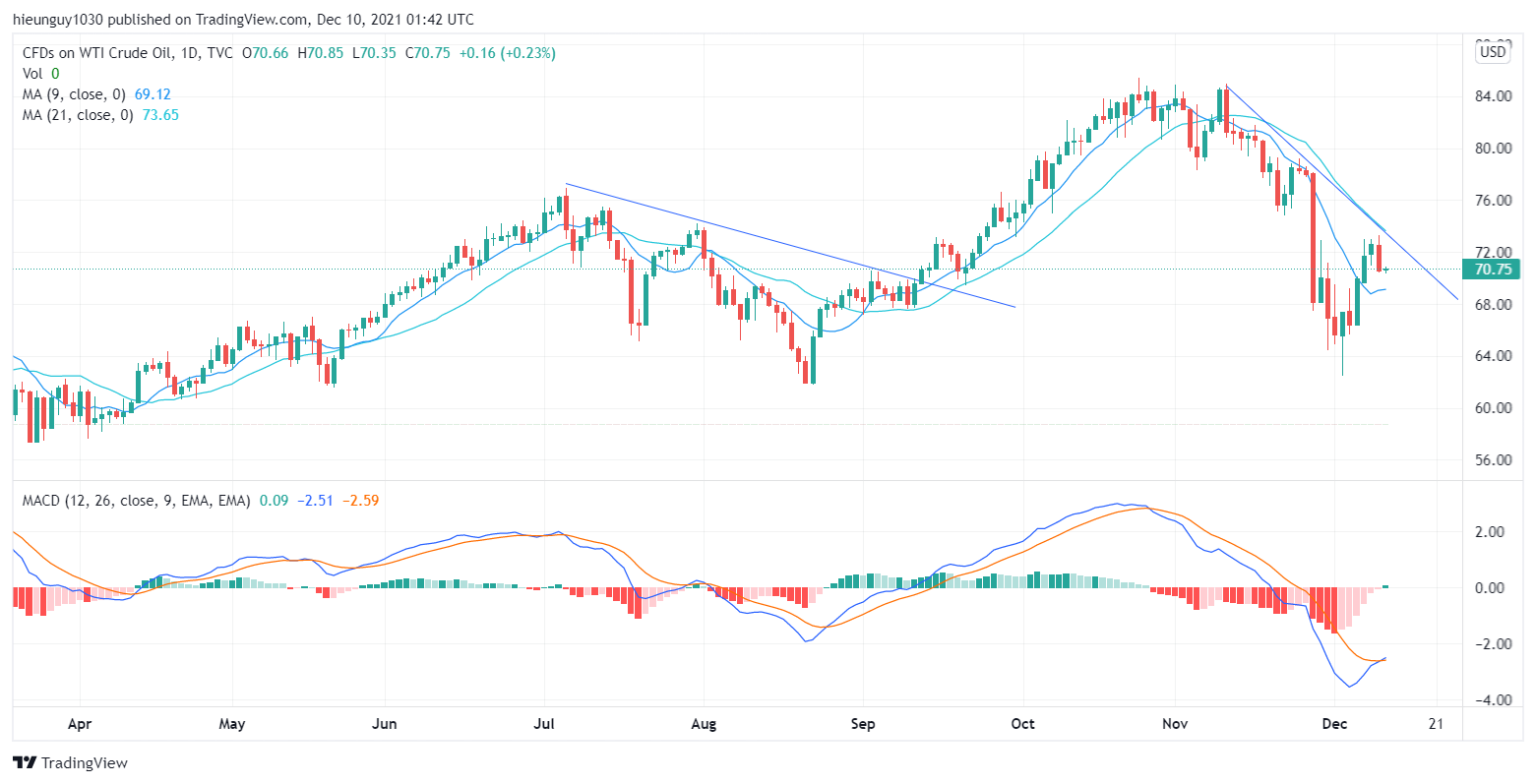 USOIL len gap can, chinh lai va co support o duong MA9 dang cong len. Dong dau khi se chinh hom nay, chinh de mua.