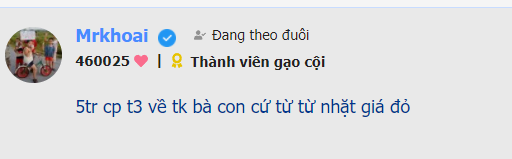 Mấy bác kia kê lệnh vậy T3 hàng bà con về còn cái nịt