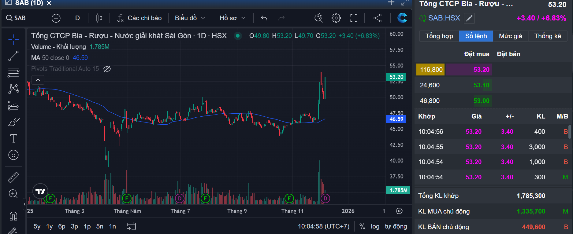 Mức cổ tức này giúp SAB thuộc nhóm cổ phiếu chi tiền đều, hấp dẫn với nhà đầu tư ưu tiên dòng tiền ổn định. Với thanh khoản mạnh và nền tảng hoạt động ổn định, SAB đang dần trở thành lựa chọn “cổ tức bền vững” trong rổ VN30.