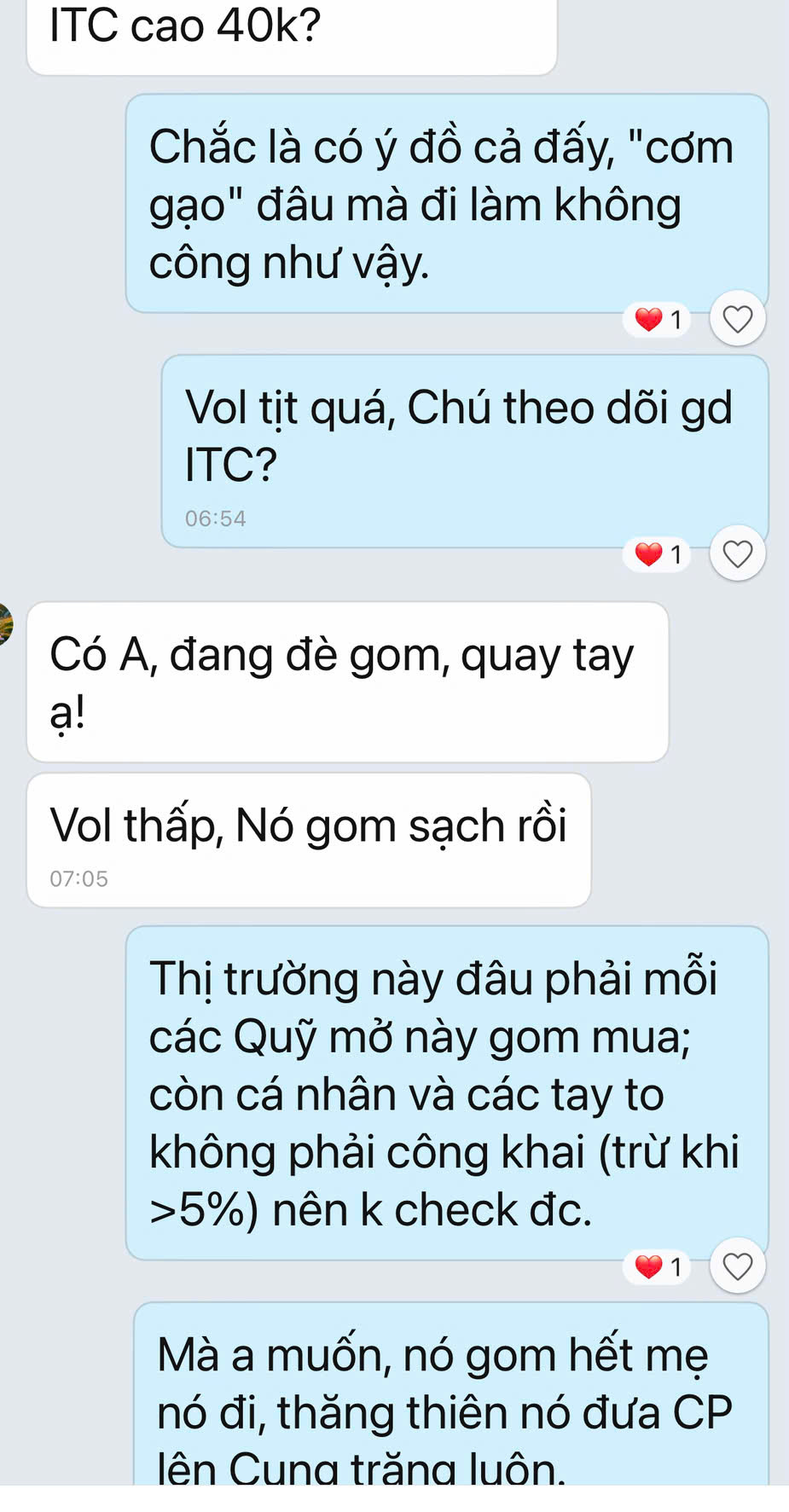 Các Quỹ nội, các tổ chức trong nước… mà cứ gom mua thế này thì thời gian tới ITC công bố bỏ tỷ lệ sở hữu nước ngoài chắc không còn nhiều ý nghĩa nữa!
