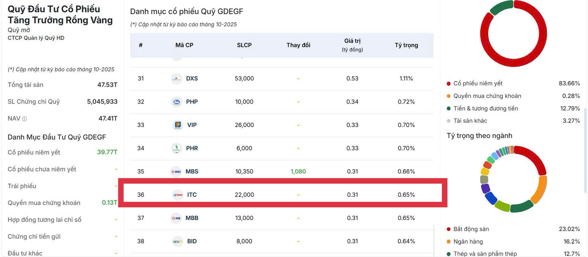 Quỹ Đầu Tư Cân Bằng Tuệ Sáng VIBF, Quỹ này cũng thuộc Vina Capital lại gom tiếp gần 1 triệu cổ phiếu ITC