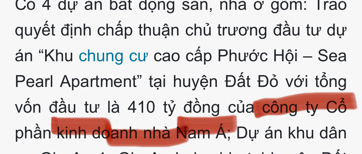 Dự án Khu chung cư cao cấp Phước Hội - Sea Pearl Apartment là một dự án bất động sản mới tại tỉnh Bà Rịa - Vũng Tàu, vừa được trao giấy chứng nhận đăng ký đầu tư vào cuối tháng 3/2024. Dưới đây là các thông tin chi tiết tính đến đầu năm 2026: 1. Thông tin tổng quan dự án Tên dự án: Khu chung cư cao cấp Phước Hội - Sea Pearl Apartment. Vị trí: Huyện Đất Đỏ, tỉnh Bà Rịa - Vũng Tàu. Chủ đầu tư: Công ty Cổ phần Kinh doanh Nhà Nam Á. Tổng vốn đầu tư: Khoảng 410 tỷ đồng. 2. Bối cảnh pháp lý và phát triển Dự án nằm trong danh sách 15 dự án trọng điểm được UBND tỉnh Bà Rịa - Vũng Tàu trao quyết định chủ trương đầu tư và giấy chứng nhận đăng ký đầu tư tại Hội nghị triển khai quy hoạch tỉnh thời kỳ 2021 - 2030 (diễn ra ngày 30/03/2024). Sự xuất hiện của dự án góp phần vào làn sóng đầu tư lớn vào huyện Đất Đỏ, bên cạnh các dự án khu dân cư khác như Gia An Lakeside.