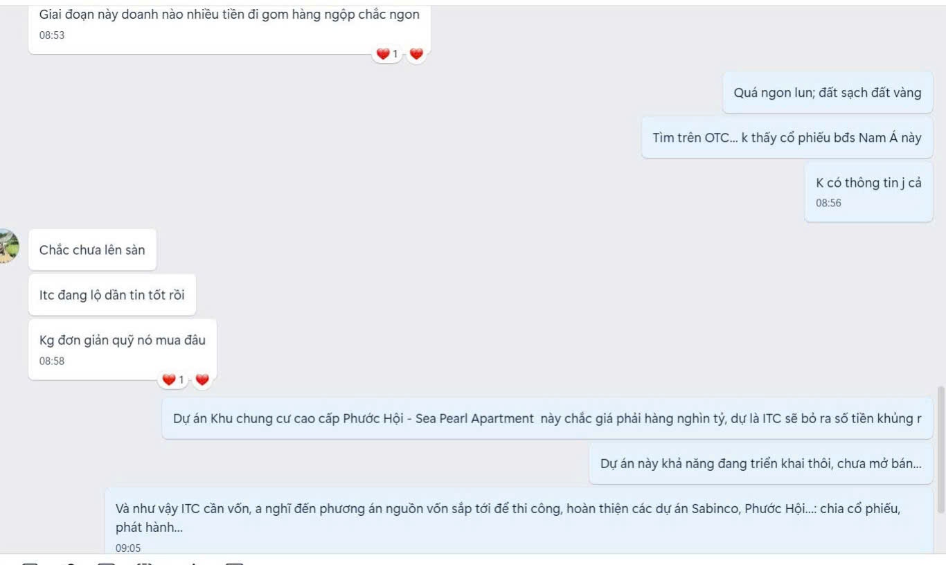 => Việc mà ITC sắp phải triển khai Sabinco và Star Village (gđ1 phân khu cao tầng) cần rất nhiều vốn mà họ vẫn có nguồn lực đi M&A dự án giai đoạn này chứng tỏ: (1) ITC rất tự tin vào cơ cấu tài chính hiện nay, có thể họ đã chủ động một phần đầu ra từ dự án Sabinco (RCL mua sỉ 46 căn từ trước, có thể có thêm các bên khác, biên của phần mua sỉ sẽ hơi thấp hơn bán lẻ, được cái là tối ưu dòng tiền), có thể là cả Star Village; (2) Dự án Sea Pearl sẽ là của để dành, hiện vẫn trong giai đoạn hoàn tất pháp lý, cần phải bỏ thêm vốn triển khai sau này; (3) Tính cách lãnh đạo ITC là thận trọng và còn có cổ đông nhà nước bên cạnh, và còn có kênh tạo tiền Terra Royal nên mình khá yên tâm về các quyết định của ITC.