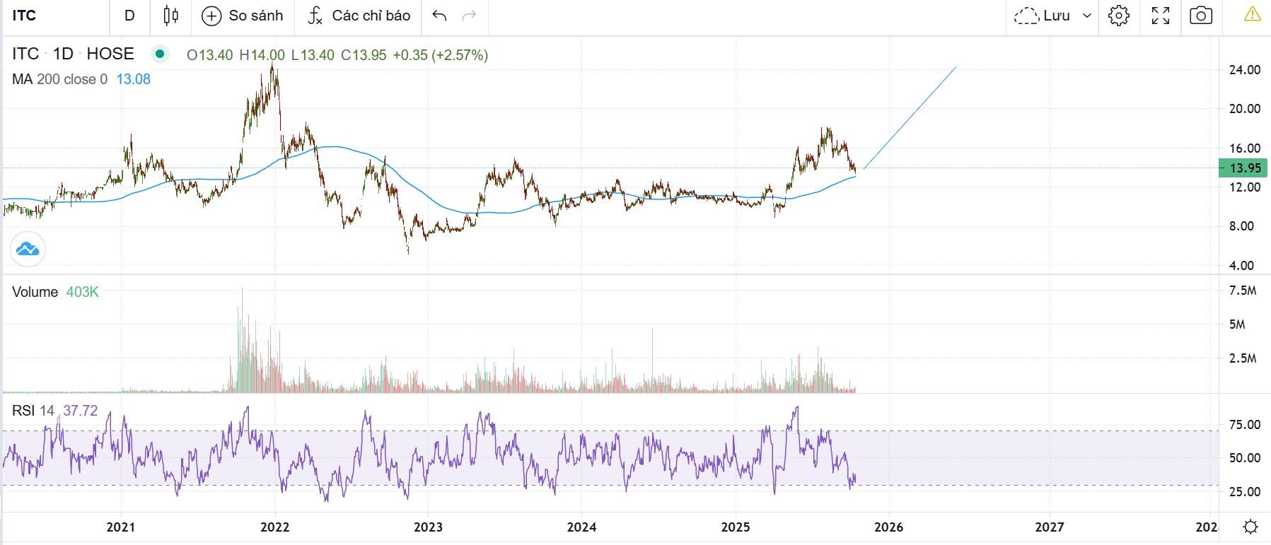 Chúng ta đang ở vùng đáy MA200, thật sự rất hiếm khi gom được cổ bđs ngon ở giá quanh MA200 cho trung dài hạn. Nên tôi nghĩ các ae mua đi. @phikhonglo @Ongngoaibong @saturn Đừng quan tâm tới việc bị chê bai, mà nhìn tài sản ITC quá xịn, giá quá chặt ở MA200 quanh 13.x-14. ITC sẽ cho chúng ta cổ tức cực khủng trong 1-2 năm tới. Bigboy cho nhỏ lẻ chán, nó éo kéo, vì nó cũng phải gom. vol ntn thì ko thằng bigboys nào ngu bán đi cả. Dragon gom, Vinacapital gom, Vietcap gom, gia đình lãnh đạo đều đang nhặt. Vậy tại sao mình phải ngại?