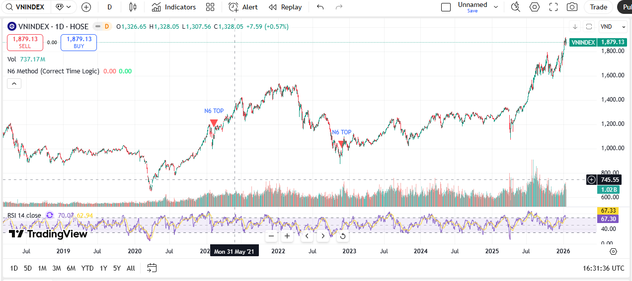 áp dụng đầy đủ thì sẽ thấy ở chỉ số Vnindex N6 cũng chỉ ra các cơ hội bắt sóng dài chứ k có bị sai đâu
