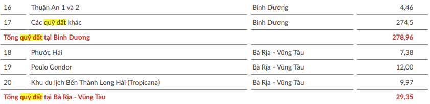 Tại Bà Rịa - Vũng Tàu – 29,35 ha:
