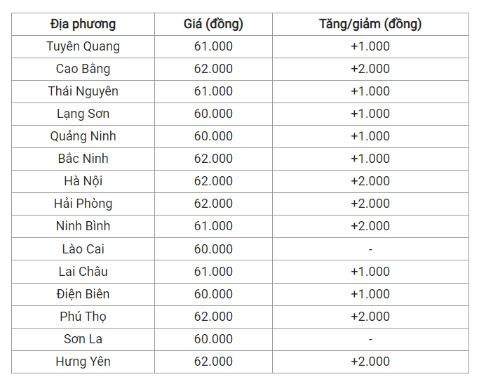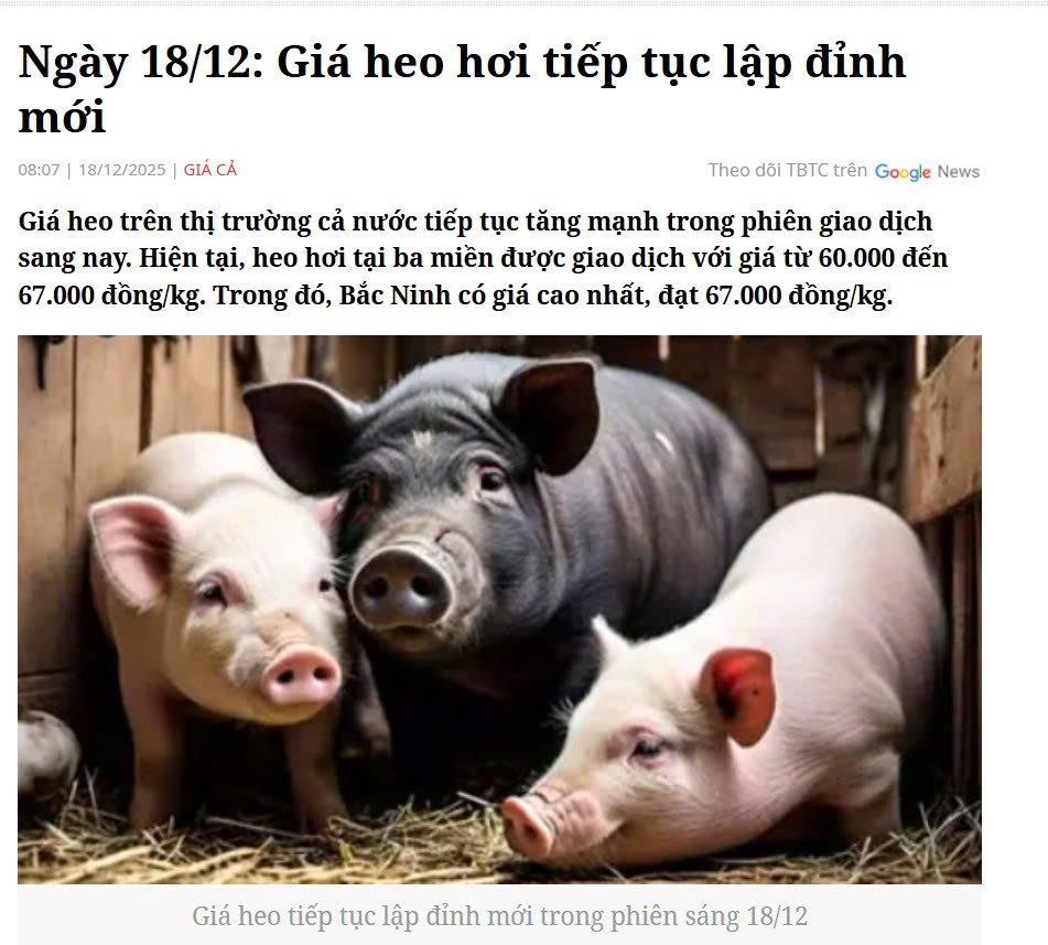 Giá heo miền Bắc (tổng hợp ngày 12/12, nguồn VietnamBiz)