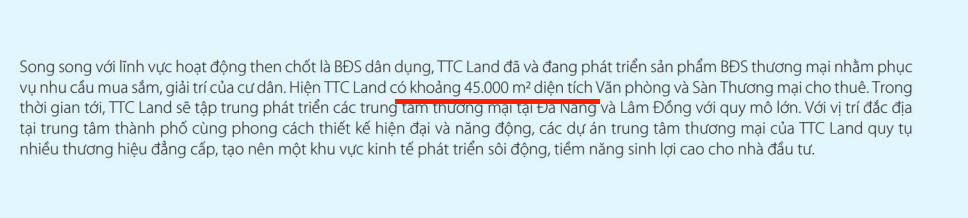 Báo cáo thường niên 2021 TTC Land sở hữu 45 nghìn mét sàn TM