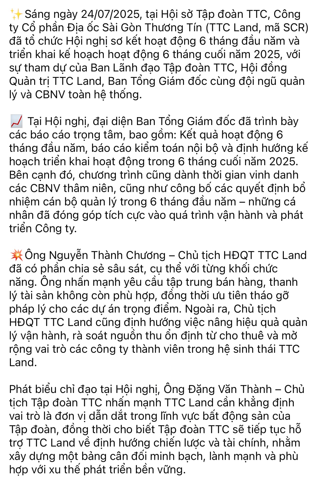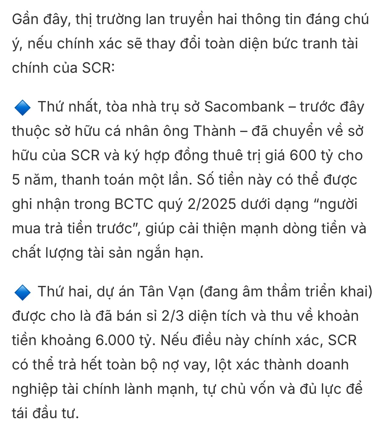 Chủ tịch tập đoàn đã nhấn mạnh scr sẽ là đầu tầu của tập đoàn, sbt đã vượt đỉnh sắp tới sẽ tới lượt scr