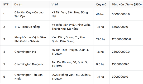 Dự án Đảo Kim Quy (Đồng Nai): Diện tích 48 ha với hơn 570 căn biệt thự và nhà phố, tổng mức đầu tư 7.200 tỷ đồng. Theo kế hoạch, doanh thu tiềm năng có thể đạt 9.000 tỷ, lãi gộp kỳ vọng ~1.800 tỷ đồng, mở bán đợt chính từ cuối 2026.
