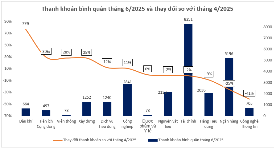 Thống kê từ đầu quý II/2025 cho thấy, thanh khoản nhóm VN30 giảm mạnh từ mức 13.217 tỷ đồng xuống còn 9.085 tỷ đồng/phiên – tương đương mức giảm khoảng 15%. Ngược lại, nhóm cổ phiếu vốn hóa vừa và nhỏ ghi nhận sự cải thiện thanh khoản rõ rệt. Đáng chú ý nhất là chỉ số VNSML với mức tăng tới 17%, cho thấy dòng tiền đang tìm kiếm cơ hội tại những mã có vốn hóa nhỏ hơn, đi kèm với triển vọng tăng trưởng rõ nét hơn.