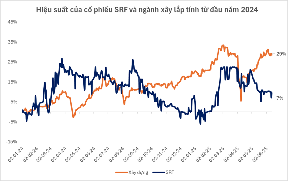 Song song đó, hiệu suất tăng giá cổ phiếu SRF từ năm 2024 đến nay mới đạt khoảng 7%, thấp hơn mức tăng bình quân 29% của ngành xây lắp. Do dòng tiền từ các cổ phiếu vốn hóa lớn vẫn chưa chuyển dịch sang.