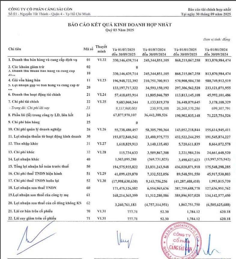 #SGP - CTCP Cảng Sài Gòn BCTC quý 3.2025 lnst tăng gấp 15 lần svck.