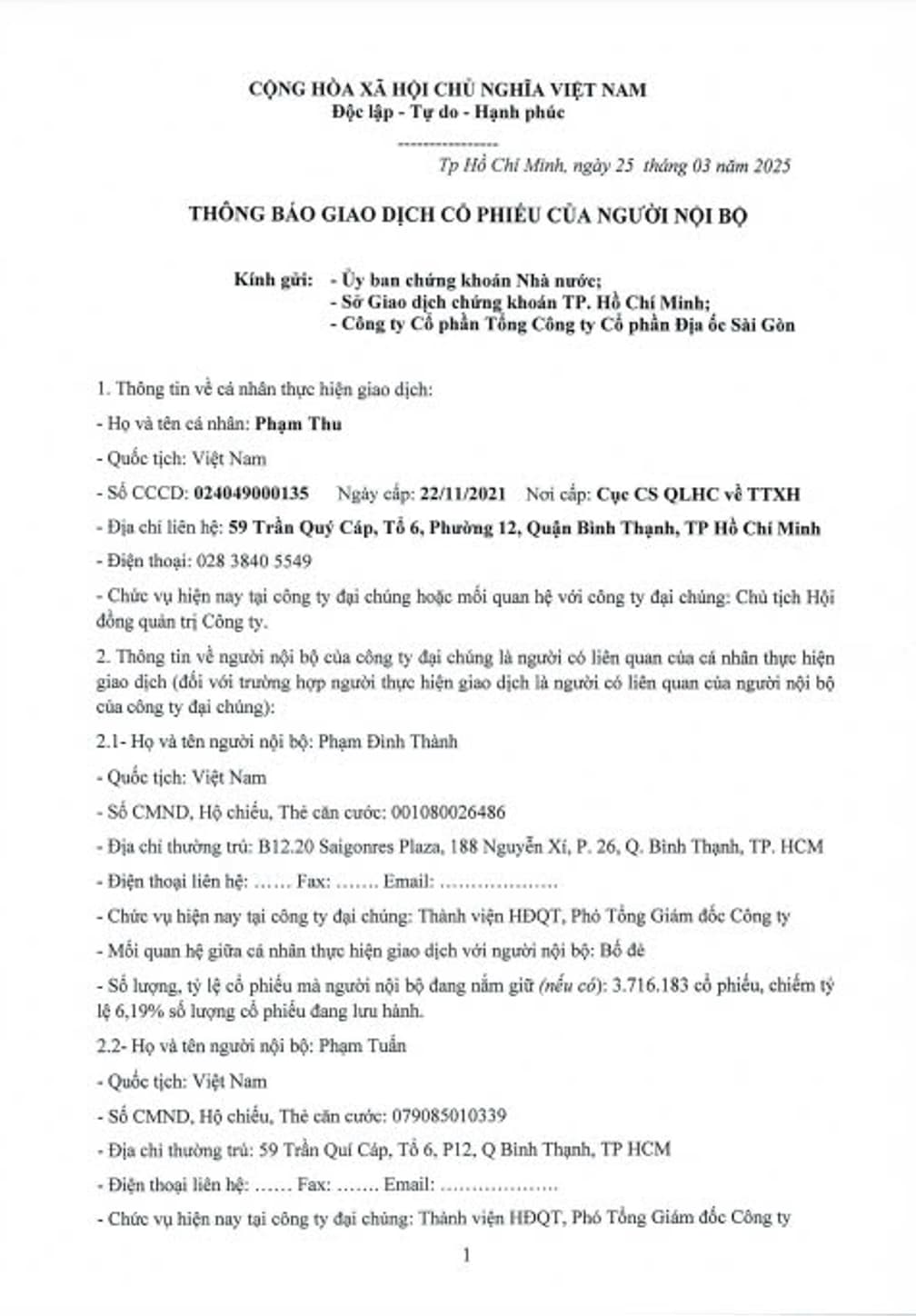 Chủ tịch thấy công ty quá uy tín, SGR giá trị quỹ đất cực lớn, qua đây thấy được tiềm năng cực lớn từ quỹ đất sạch của SGR