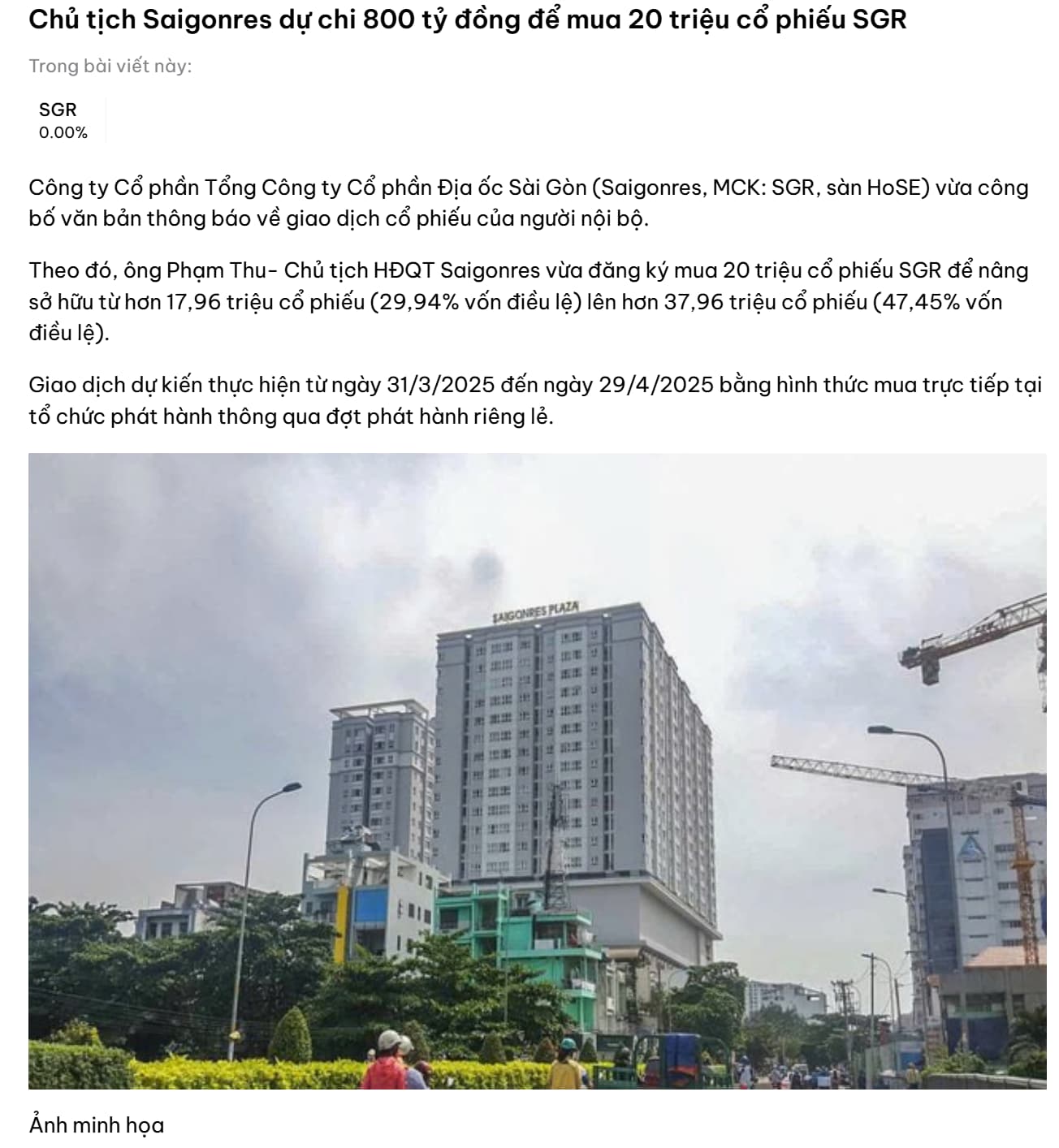 SGR đầu tư trung dài hạn, lúc vào sóng thì phi tít