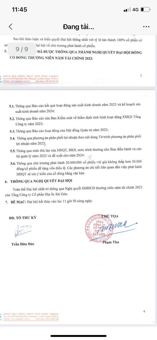Nghị quyết ĐHCĐ SGR.