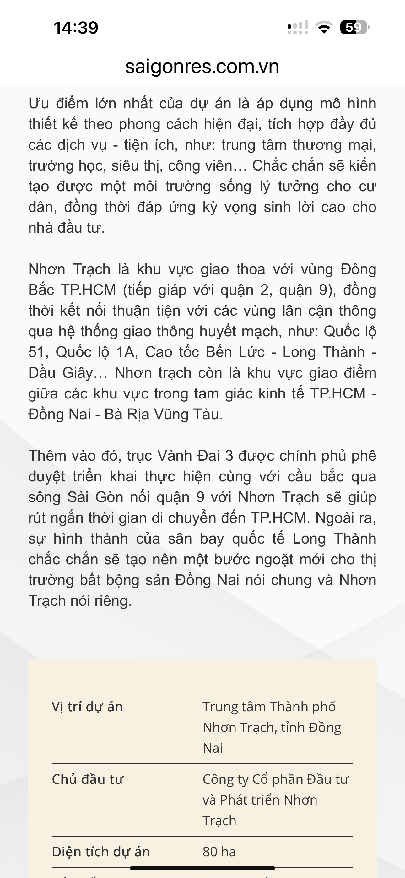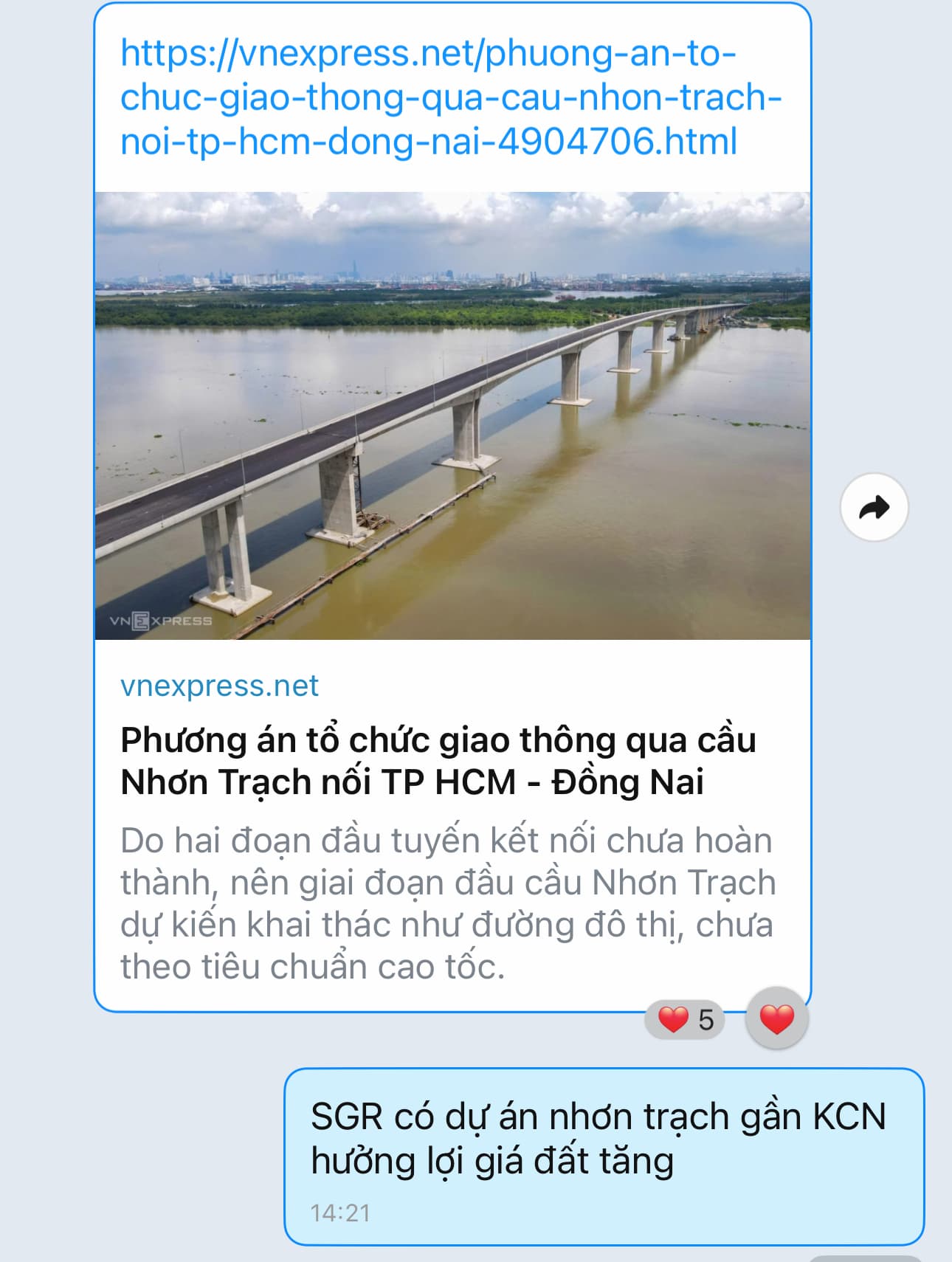 Thông cầu nhơn trạch HCM, thì SGR có dự án 80ha nhơn trạch hưởng lợi