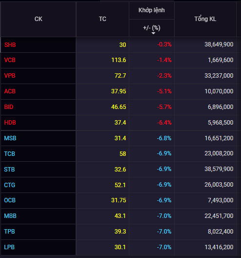Giá SHB giảm nhẹ nhất so với giá tham chiếu, chứng tỏ SHB chưa được bơm thổi, lái giá nhiều như những mã ngân hàng khác.