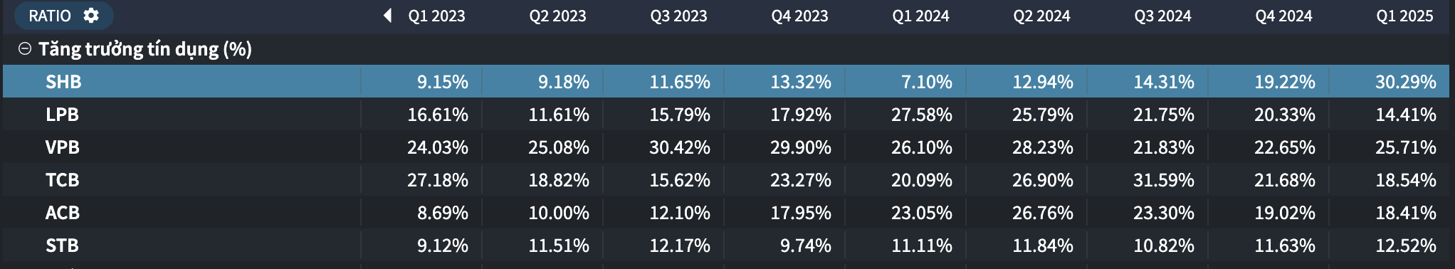 - Về tăng trưởng tín dụng: SHB ghi nhận tăng trưởng tín dụng 7% so với cuối năm 2024 với dư nợ cấp tín dụng đạt 575 nghìn tỷ đồng, tăng 30,2% svck. Đây cũng là mức tăng trưởng ấn tượng trong khối các ngân hàng tư cùng quy mô.