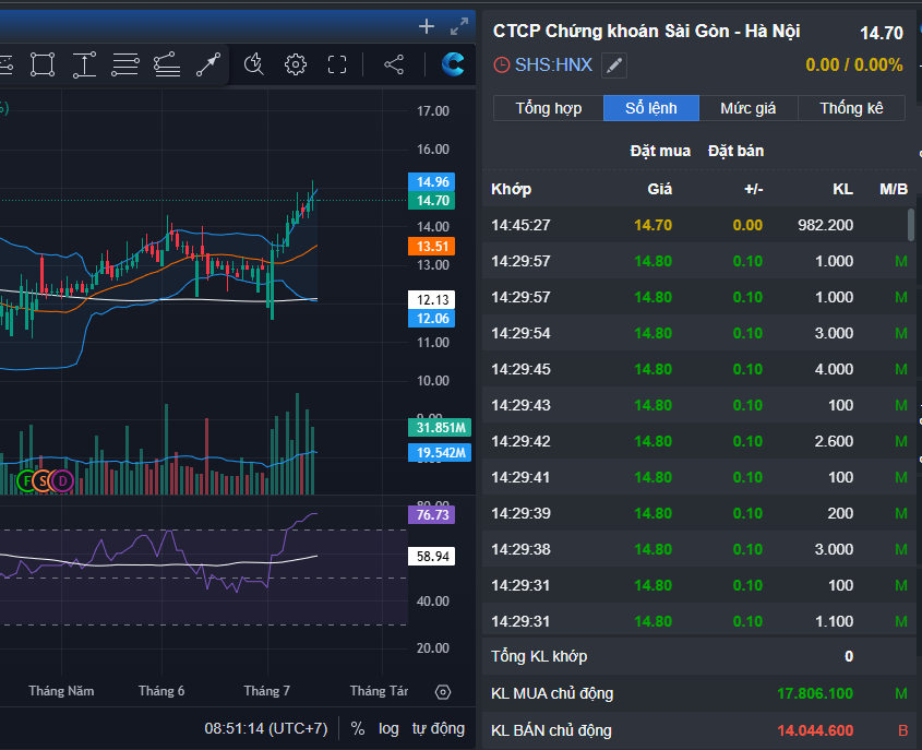 Đồ thị SHS có nhịp rũ hàng suốt năm 2024, nhưng sang năm 2025 dòng tiền lớn bắt đầu tham gia trở lại. Nếu VN-Index duy trì xu hướng tăng, SHS có thể bứt phá