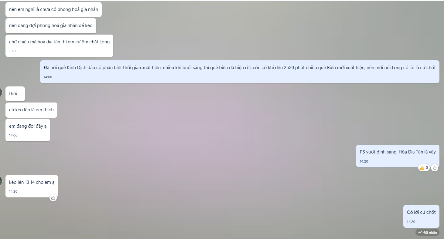 Quẻ Kinh Dịch tuy chỉ là xem trong ngày, trong khi cơ sở thì bị cái T+2.5, nhưng nếu ai đánh Phái sinh, đánh T0 được thì lợi thế lắm