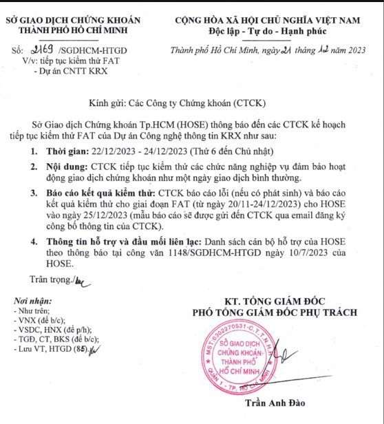 Kính chúc mọi người trong room 1 buổi sáng thật hạnh phúc, vui tươi, tràn đầy năng lượng và lòng yêu thương, trong không khí Giáng Sinh an lành và chuẩn bị kết thúc năm 2023, chào đón năm 2024, những gì qua thì cũng đã qua, quá khứ đã ở sau lưng, con người chỉ có thể sống ở hiện tại và có niềm tin ở tương lai. Sáng nay thì tin về KRX vẫn chưa xuất hiện gì cả, tức không rõ liệu cuối tuần vừa rồi các công ty chứng khoán test thử hệ thống có kết quả thế nào. Dĩ nhiên cần chú ý là đôi khi trong phiên giao dịch mà ra tin bất ngờ như công ty chứng khoán A đủ khả năng kết nối KRX còn công ty chứng khoán B không đạt KRX, rồi kiểu các công ty chứng khoán nào không đạt KRX thì coi như bị bỏ lại cuộc chơi, nhà đầu tư không đặt được lệnh mua bán cho đến khi nào công ty đáp ứng đủ yêu cầu kỹ thuật… Tức sớm nhất là trong hôm nay, chậm nhất là trong tuần này danh sách những công ty chứng khoán nào đậu hay rớt kỳ thi tốt nghiệp KRX sẽ được công bố rộng rãi, thôi thì chỉ biết cầu nguyện công ty chứng khoán mình đang mở tài khoản đậu tốt nghiệp thành công KRX vậy.