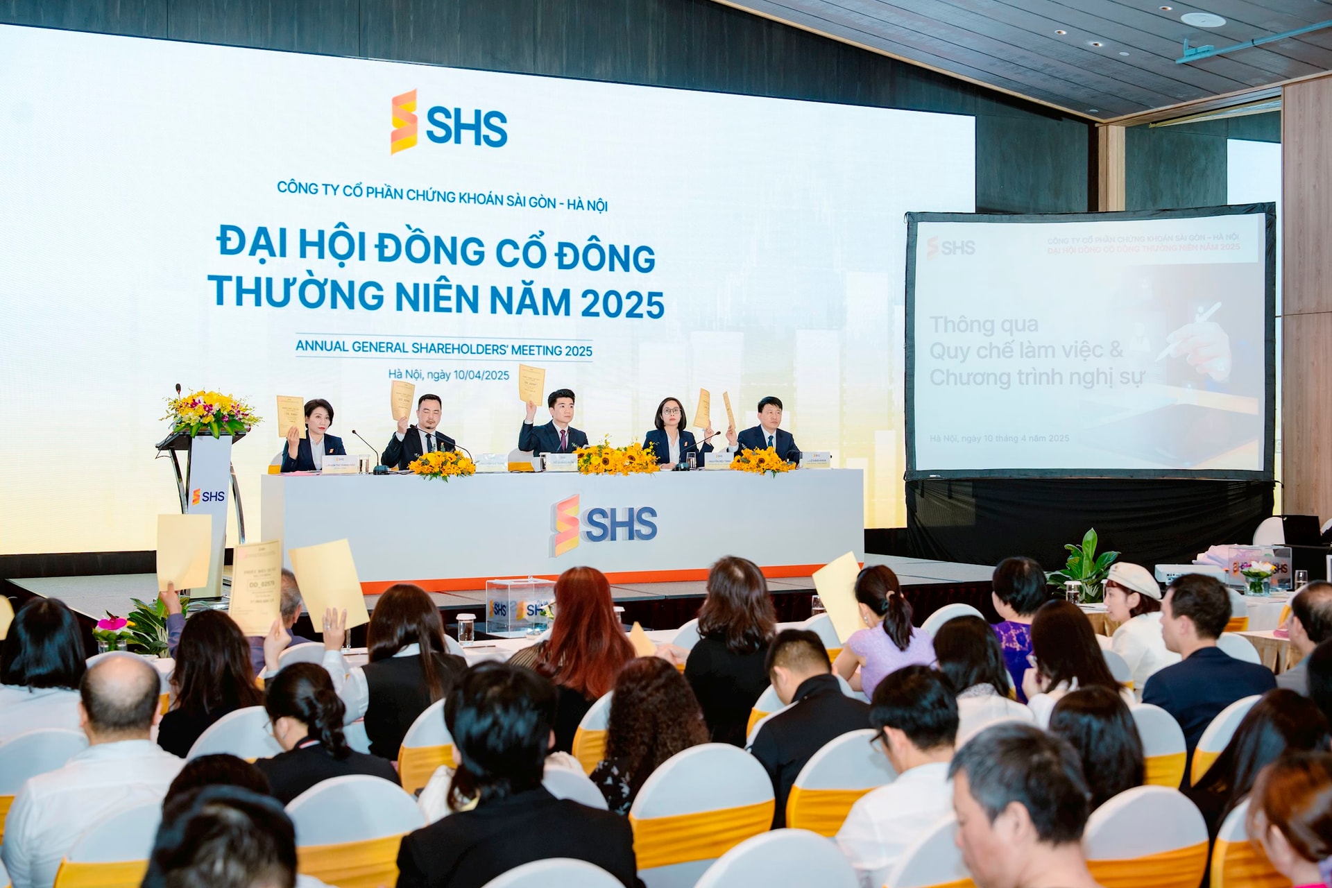 Chiều ngày 10/4, Công ty Cổ phần Chứng khoán Sài Gòn - Hà Nội (SHS) đã tổ chức thành công Đại hội đồng cổ đông thường niên (ĐHĐCĐ) năm 2025. Tại đại hội, các cổ đông đã thảo luận và thông qua nhiều nội dung quan trọng như kế hoạch kinh doanh năm 2025, phương án điều chỉnh tăng vốn, kế hoạch chia cổ tức và bầu bổ sung 2 thành viên Hội đồng Quản trị (HĐQT).