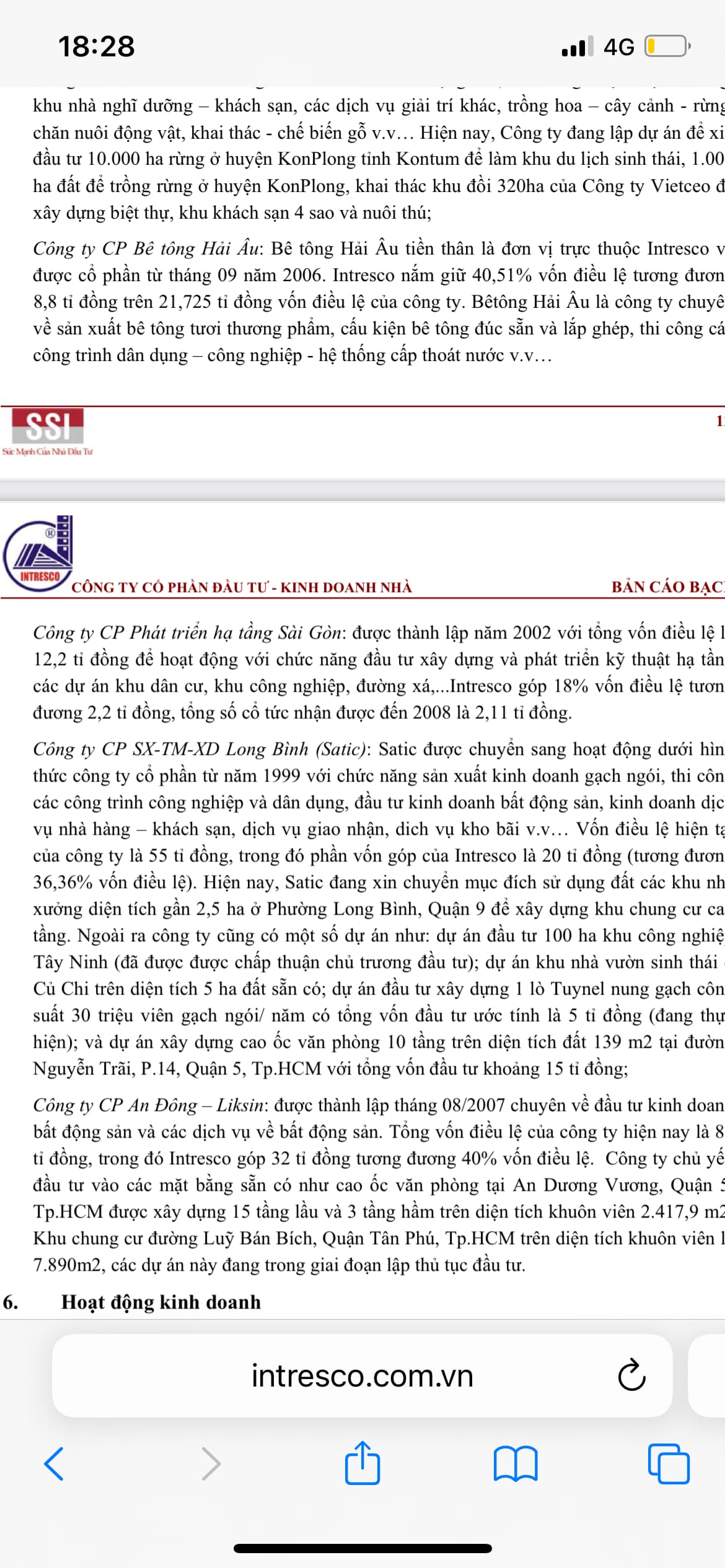 Trong đó, Công ty Long Bình-Satic (ITC sở hữu 36%) có 1 số dự án BĐS: