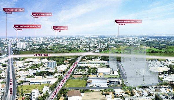 Dự án có vị trí nằm ngay gần ngã giao đại lộ Bình Dương, đường Vành Đai 3