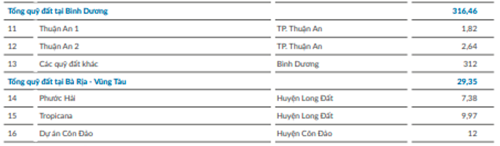 - Quỹ đất khủng: PDR sở hữu quỹ đất lớn tại Bình Dương (316.46 ha), và Vũng Tàu (29.35 ha). Với quỹ đất vàng này, PDR có tiềm năng phát triển dài hạn, đặc biệt khi giá đất tại khu vực tăng mạnh sau sáp nhập.