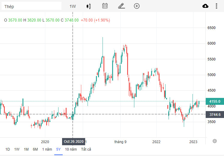 Từ mốc đáy 3.500 CNY / Tấn vào ngày 31/10/2022 lên mốc 4.155 CNY / Tấn vào ngày 17/02/2023 ( Tương đương mức tăng 19% ). - Xem xét BCTC.