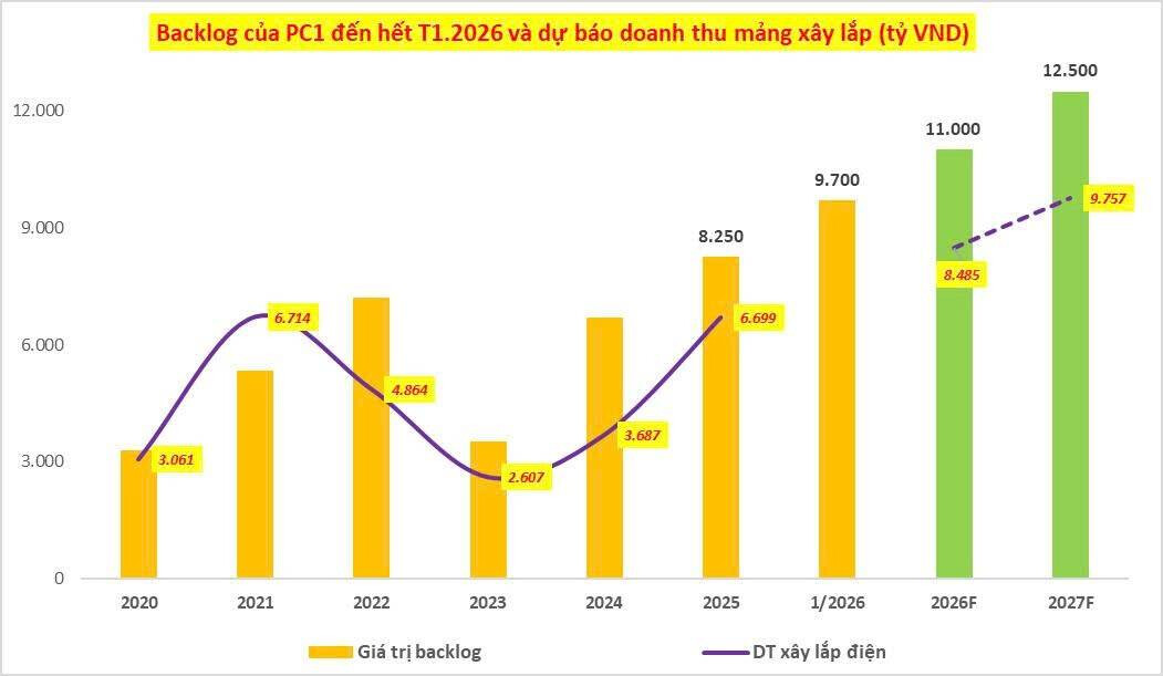 Kế hoạch dự phóng khoảng 14.000 tỷ doanh thu trong năm 2026. Trước khi tăng trưởng tốt nhờ mảng năng lượng trong năm 2027. PC1 sẽ có một năm bản lề để bứt phá.