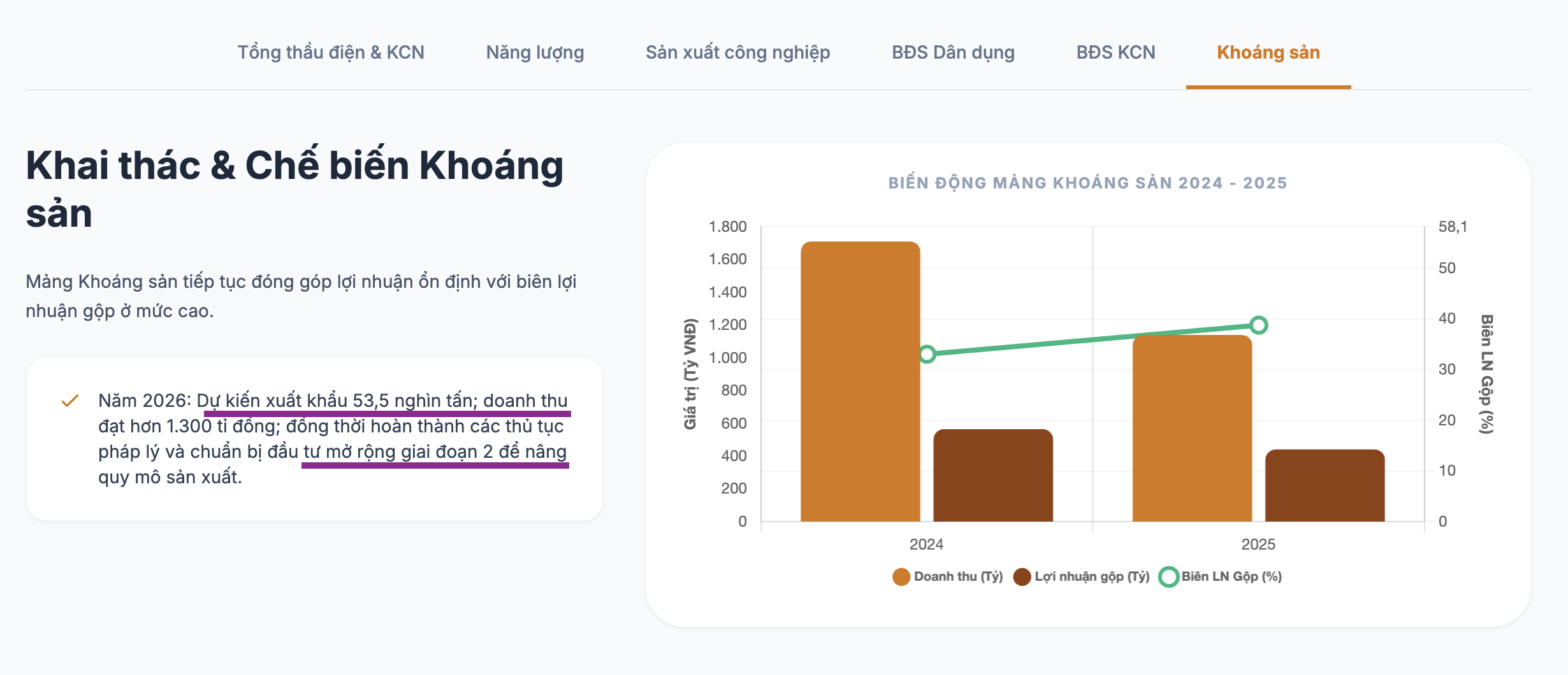 Đầu tiên là tình hình tinh quặng nickel đã có mức tăng giá tốt ngay từ đầu năm 2026 với đà tăng khoảng 20%. Doanh thu quặng ở mức khoảng 230 tỷ mỗi quý có thể tăng lên gần 300 tỷ mỗi quý và biên lãi gộp sẽ tăng mạnh lên tới 50% mang về cho PC1 khoảng 150 lãi gộp mỗi quý.