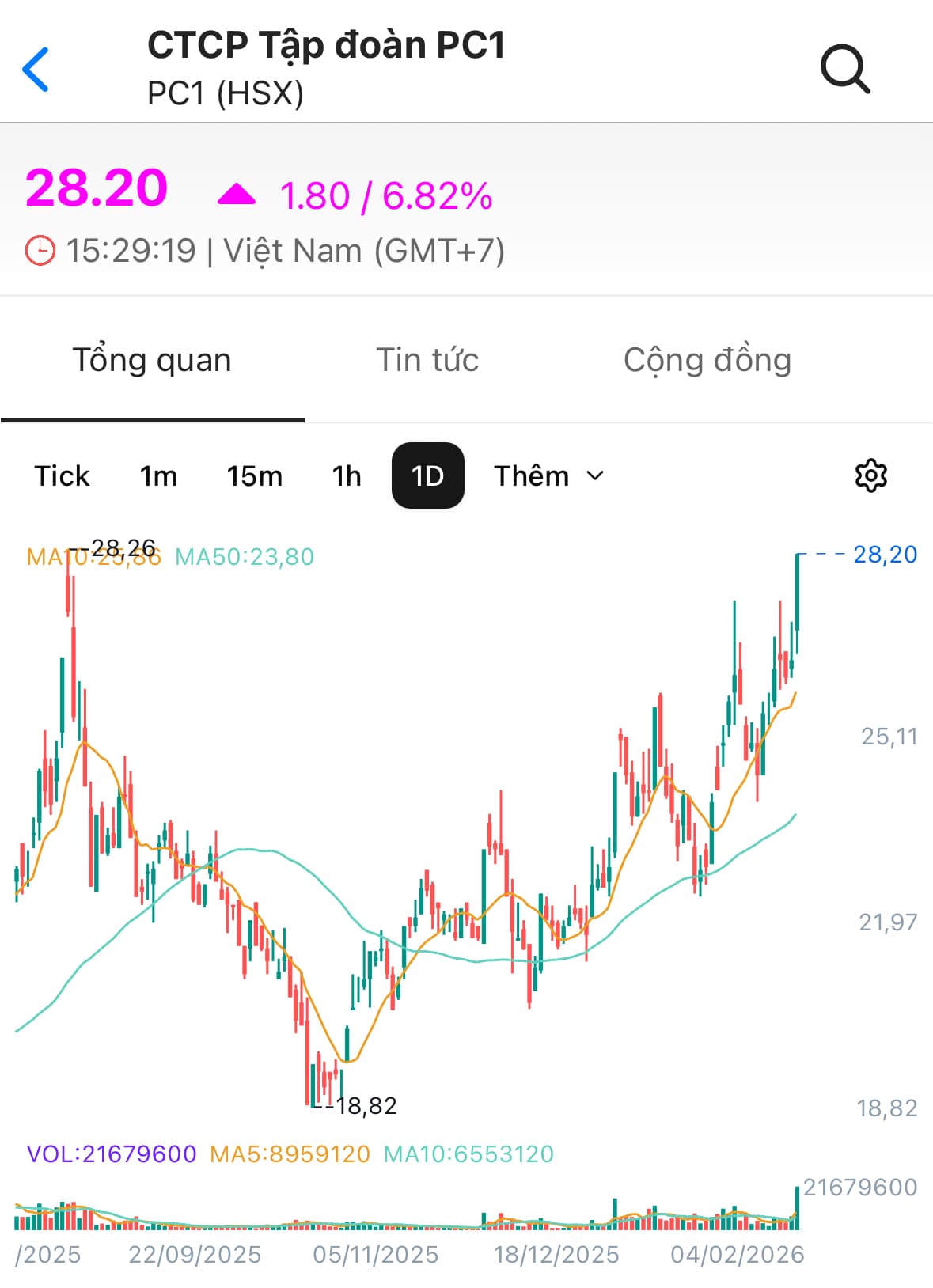 Với quy mô tập đoàn ngày càng khổng lồ và đa ngành của mình, PC1 nhiều khả năng sẽ được định giá ở mức khá cao, P/E đạt khoảng 15.0x như các tập đoàn khác, chúng tôi cho rằng trong dài hạn đến 2027 PC1 sẽ cán mốc vốn hoá tỷ USD, trong chặng đường 2026 chúng tôi kỳ vọng PC1 sẽ ở quanh mốc vốn hoá 20.000 tỷ đồng, tương ứng PE fw2026 khoảng 12.5x, upside là 100% từ vùng giá 24.050 đóng cửa ngày 30/01/2026.