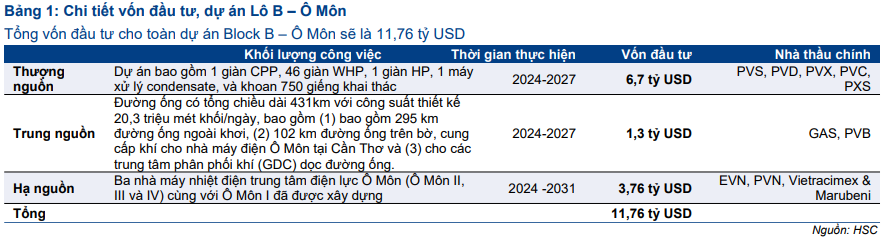 GAS, với tư cách là NĐT chính của dự án đường ống Lô B/Ô Môn với tổng giá trị đầu