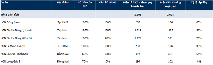 - SIP có quỹ đất lớn, tỷ lệ GPMB lên tới 78%, quỹ đất thương phẩm lên tới 1.190ha. KCN Phước Đông gđ3 dự kiến sẽ đầu tư hạ tầng trong năm 2025 để thu hút nhà đầu tư mới.